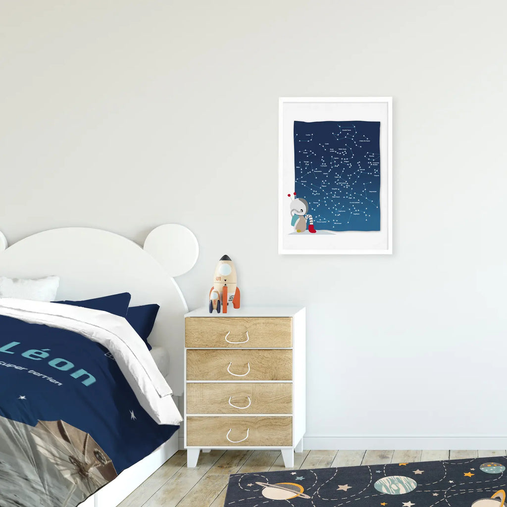 Pour rendre cette déco de chambre espace encore plus unique pour votre enfant, vous avez la possibilité de la personnaliser autour de son prénom.